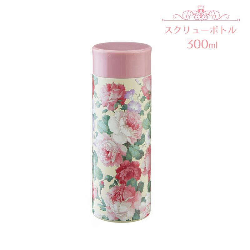 繊細でエレガントなローズ柄が目を惹く、スクリュータイプのステンレスボトル。