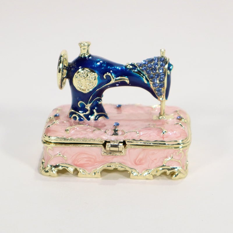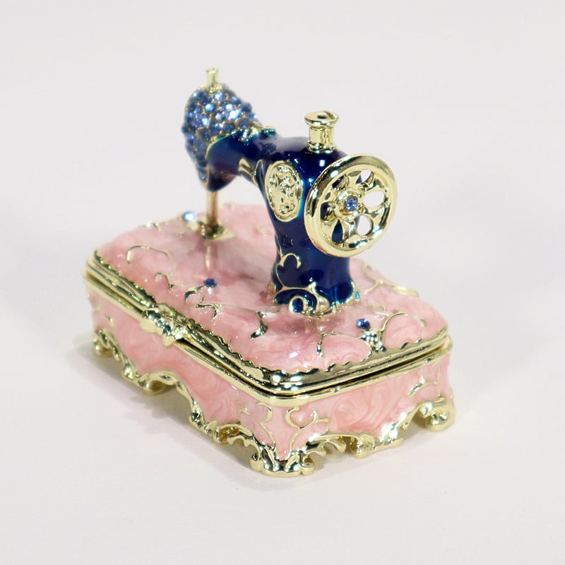 クラシカルなミシンモチーフが目を惹く、可愛らしいミニジュエリーボックス。