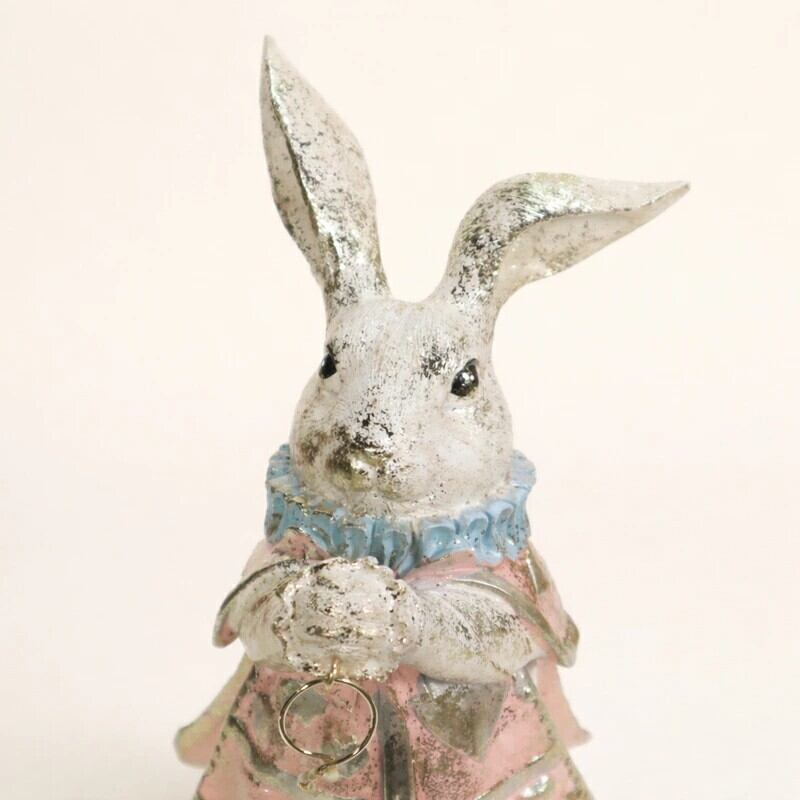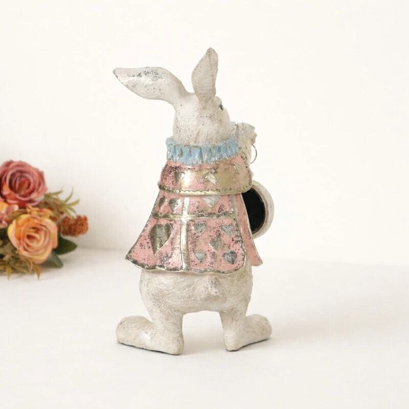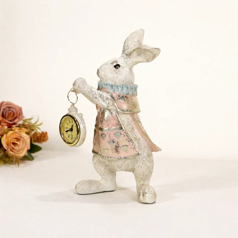 まるで不思議の国のアリスの物語から飛び出して来たような、リアルで愛らしい表情。手には物語の中でもキーとなる懐中時計を持っています。