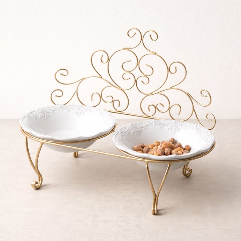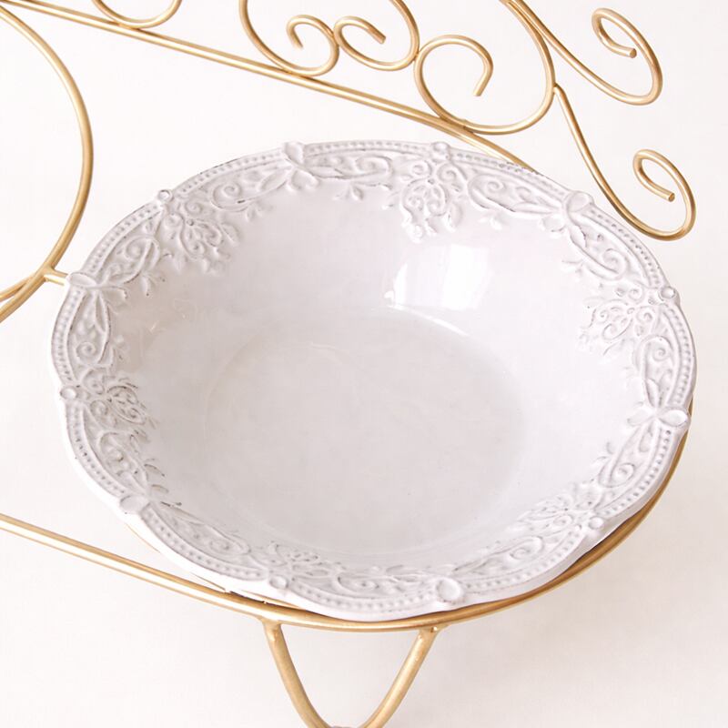 美しい曲線のゴールドアイアンフレームに、上品なホワイトの陶器ボウルを組み合わせた高級感のあるデザインです。