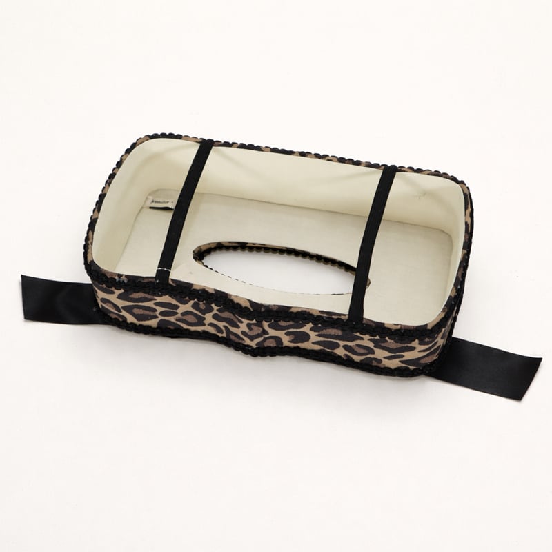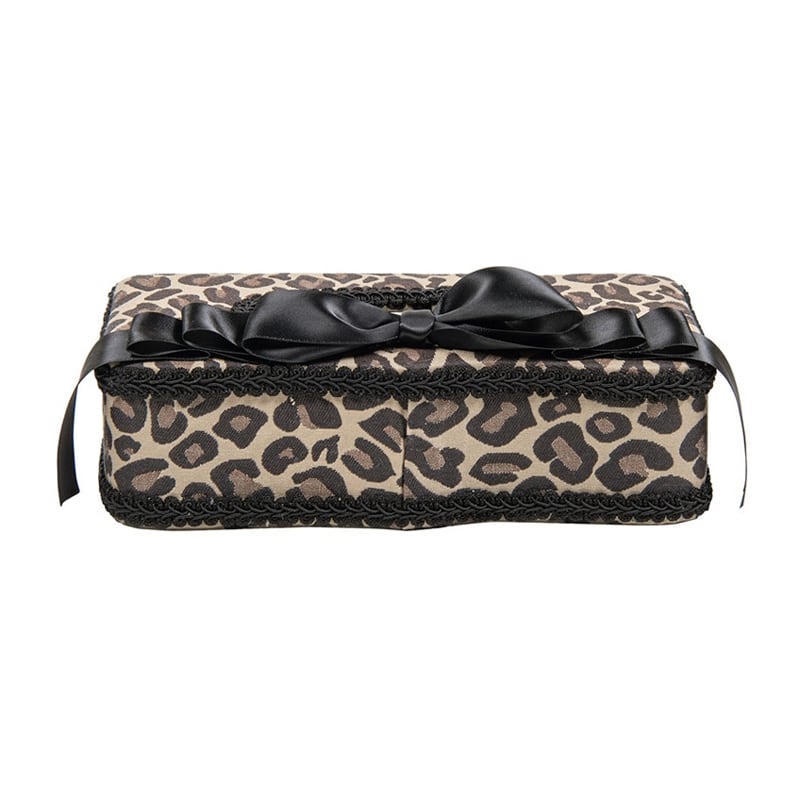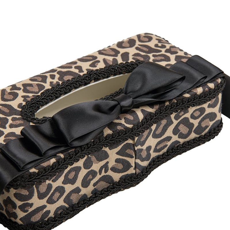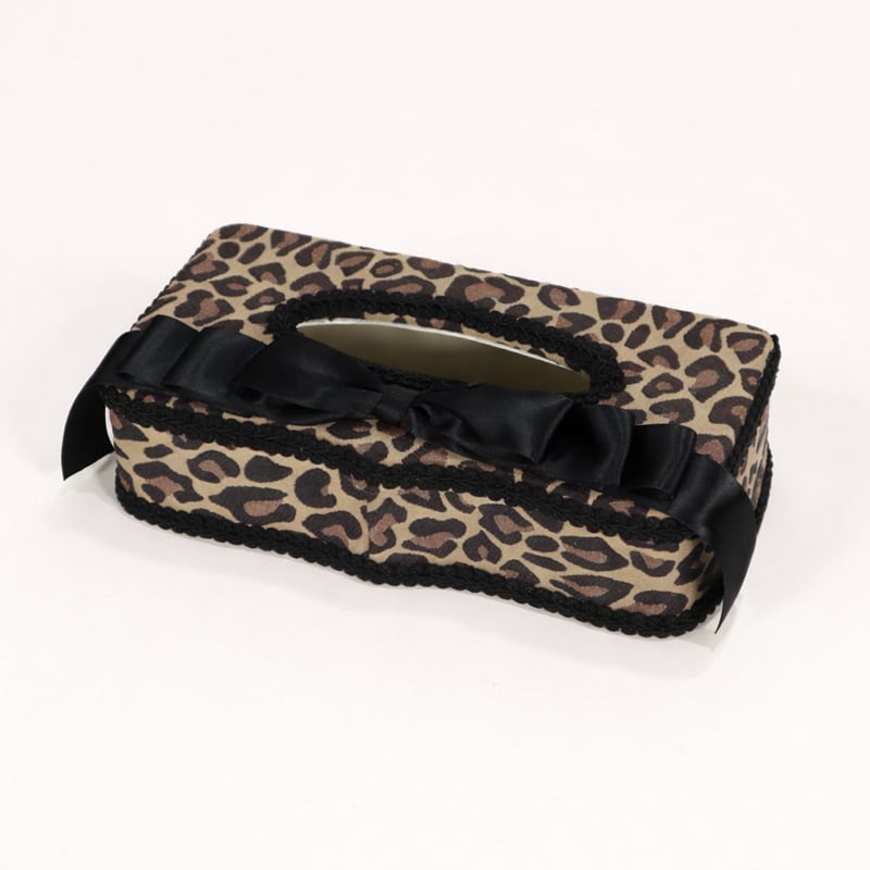 おしゃれなブラウン系のレオパード柄と、上品なブラックリボンがアクセントになり、インテリアに華やかさをプラスします。