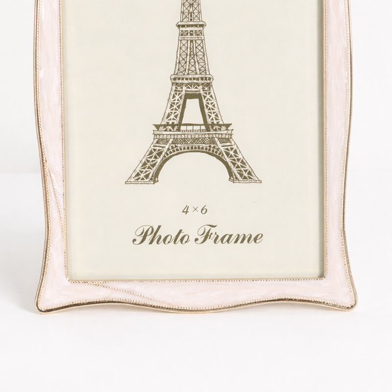 繊細なリボンモチーフと柔らかな曲線デザインが魅力の、エレガントな合金製フォトフレーム。
