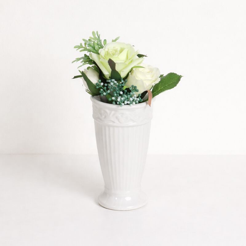 エレガントなホワイトカラーはどんなインテリアにもなじみやすく、お花を引き立てながら、置くだけでも絵になるアイテムです。