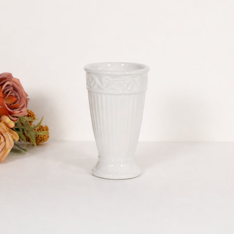 繊細な装飾と縦のリブデザインが美しいフラワーベース。