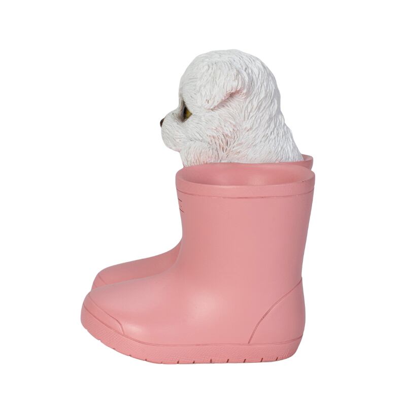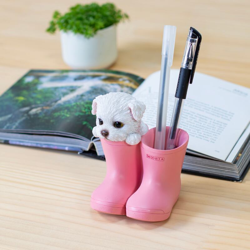 ブーツからひょっこり顔を出す可愛らしいマルチーズのペンホルダー。