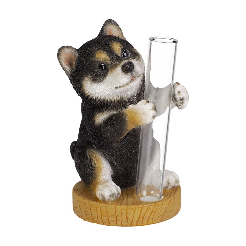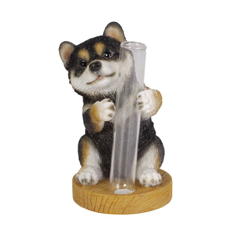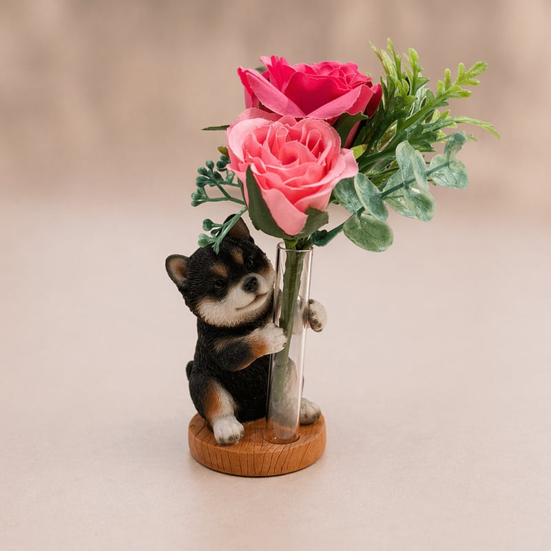 ころんとしたフォルムと、つぶらな瞳が愛らしい柴犬の一輪挿し。