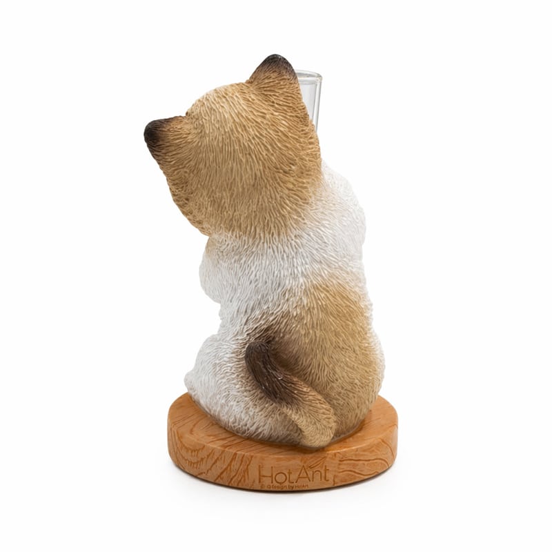 ころんとしたフォルムと、つぶらな瞳が愛らしい猫の一輪挿し。