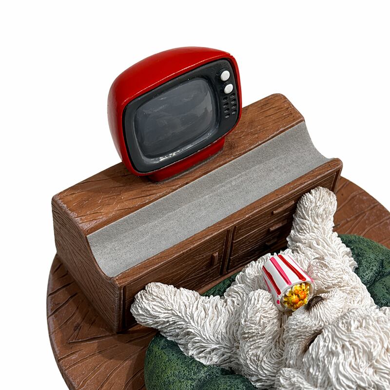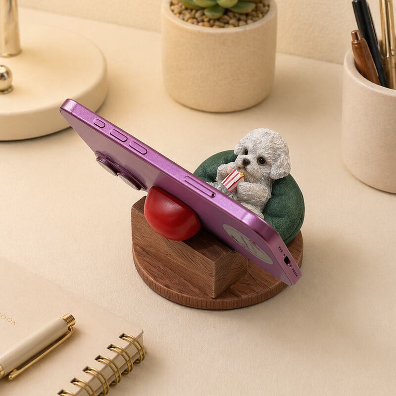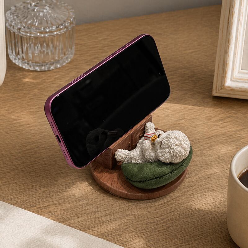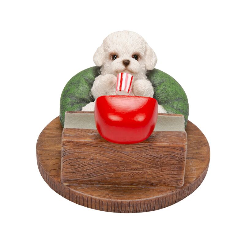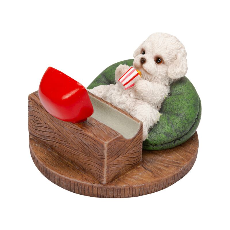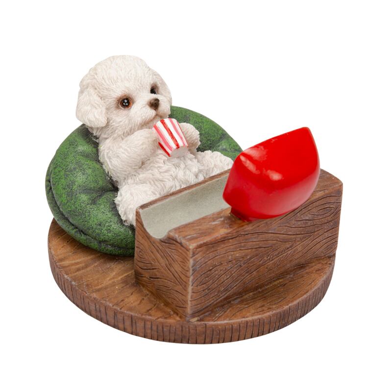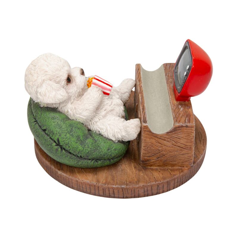 テレビを見るトイプードルをモチーフにしたスマホスタンド。