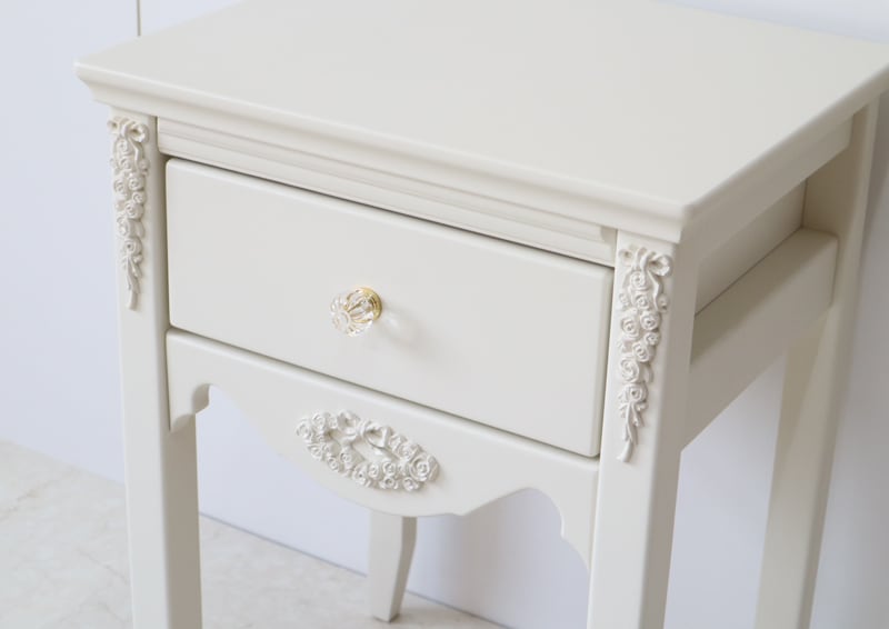 チェレスタ 451ミニチェストつまみ・奥行き選択可 ホワイト 白 完成品 コンソール 寝室 ナイトテーブル 電話台 子供部屋 エレガント ホワイト ローズ 白家具 チェスト ガーリー 姫系 かわいい おしゃれ 収納 木製 国産