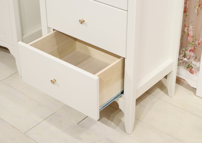 引き出しには輸入家具では使用が少ないボールベアリング式スライドレールを採用し、スムーズな開閉と使用感を実現しました。