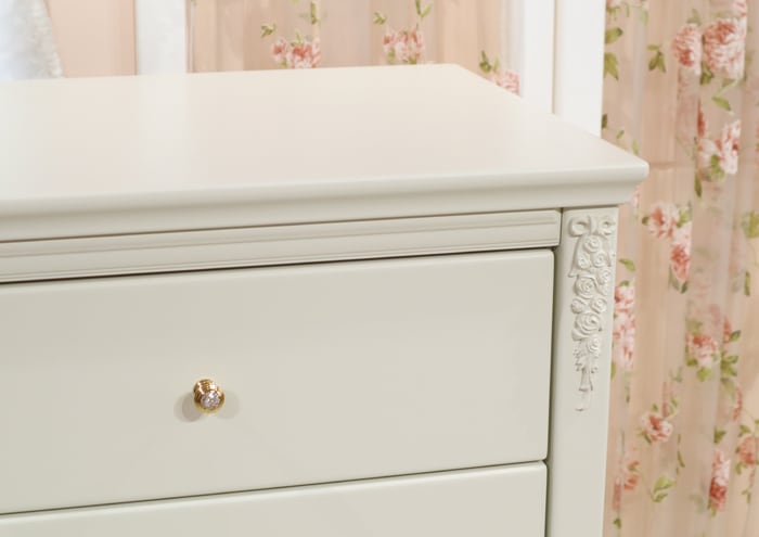 オリジナルのローズ&リボンのレリーフがかわいいリエルショップ限定の白家具【チェレスタ】シリーズ。上品で落ち着きのあるカラーと高貴なシルエットが人気です。