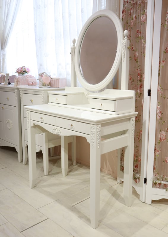 チェレスタ ドレッサー2点セット ドレッサー置きミラー+82デスク つまみ選択可 日本製 オリジナルデザイン エレガント ホワイト ドレッサー セット ローズ かわいい おしゃれ ガーリー プリンセス 姫系 化粧台 国産 木製