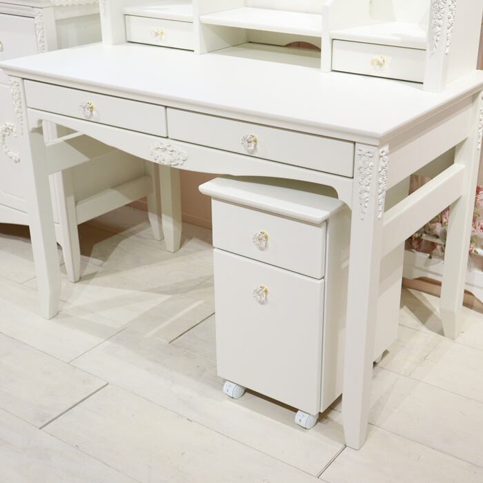チェレスタ 学習デスク3点セット(デスク高さ72cmタイプ+ブックスタンド+サイドワゴン)開梱設置配送 つまみ選択可 ホワイト ローズ エレガント ガーリー 勉強机 白 姫系 かわいい おしゃれ 学習デスク 学習机 仕事用デスク 女の子 子供部屋 国産 日本製