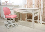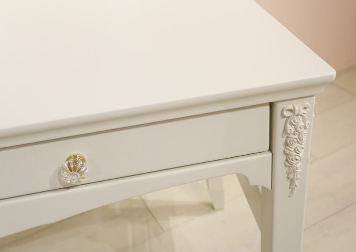 オリジナルのローズ&リボンのレリーフがかわいいリエルショップ限定の白家具【チェレスタ】シリーズ。チェレスタ学習デスクと回転式ベストフィットチェアのセットです。