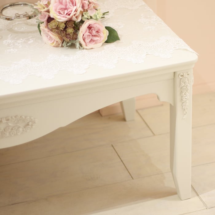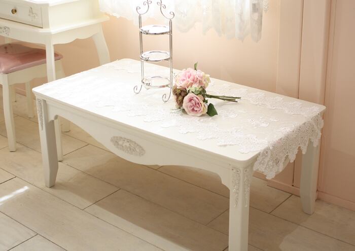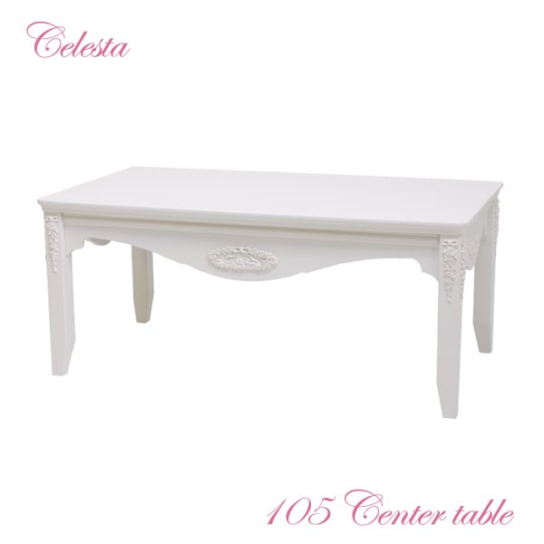 チェレスタ 105センターテーブル おしゃれ ホワイト リビング ローズ エレガント ガーリー 白家具 姫系 かわいい テーブル ローテーブル 長方形 白 食卓 国産 木 木製 完成品