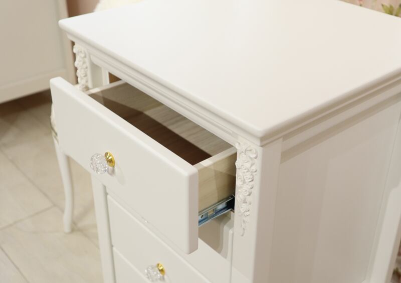 輸入家具では使用が少ないボールベアリング式引き出しスライドレールを採用し、スムーズな開閉と使用感を実現しました。