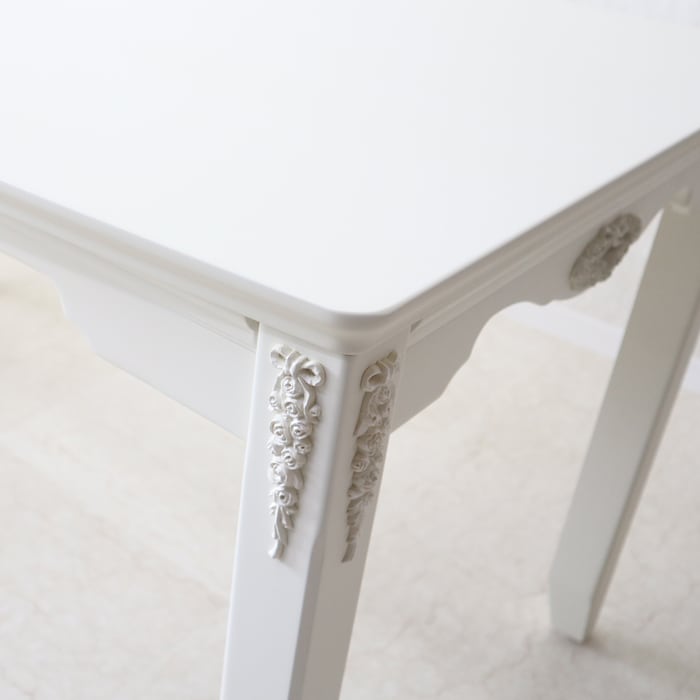 ローズ&リボンのレリーフが可愛いダイニングテーブルです。