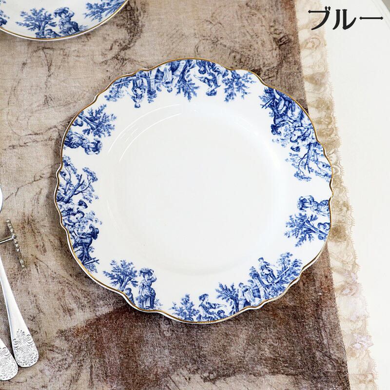 フランスの伝統的なトワルドジュイのデザインが上品な色合いでプリントされたお洒落なプレートです。