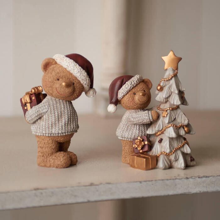 クマの毛並みやニットのようなセーターの網目など繊細にデザインされた置物です。