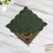 繊細で美しい花柄の刺繍とクロッシェ風のレースの縁取りを施した、クラシカルなデザインです。