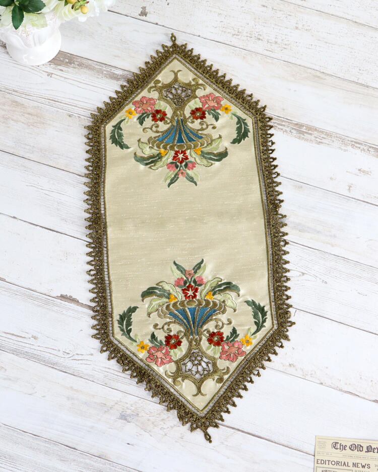 アンティーク家具やクラシカルなインテリアにぴったりで、テーブルや棚上に敷くだけでラグジュアリーな印象になります。