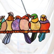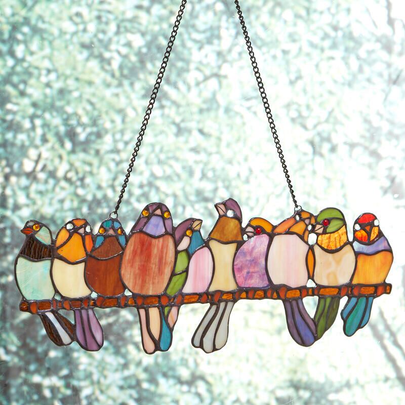 鳥をモチーフにしたステンドグラスの窓飾り。