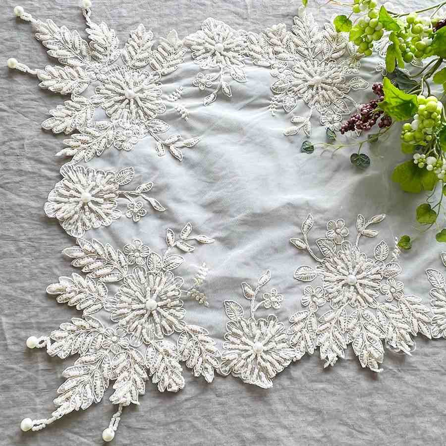エレガントなビーズとレースのテーブルセンター。