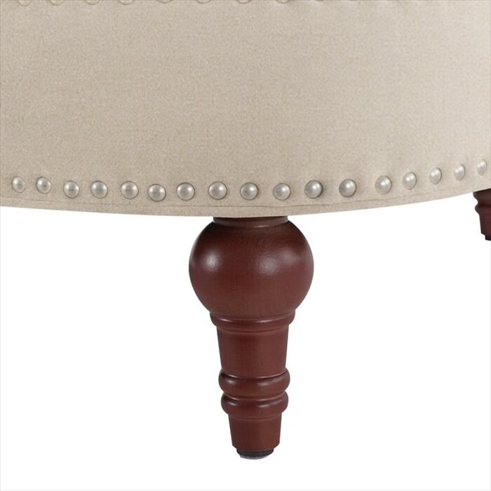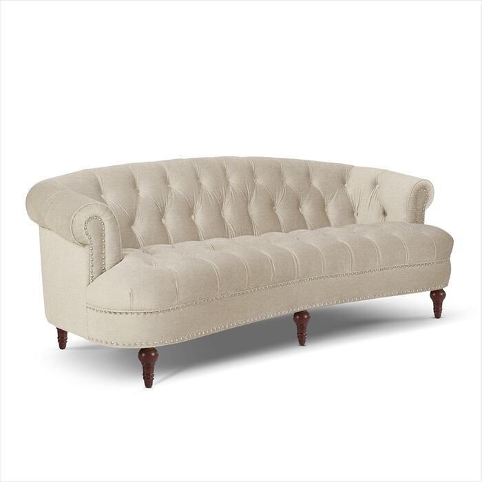 背もたれのボタン留めとネイルヘッドがアクセントになっており、上品で洗練されたデザインが魅力です。