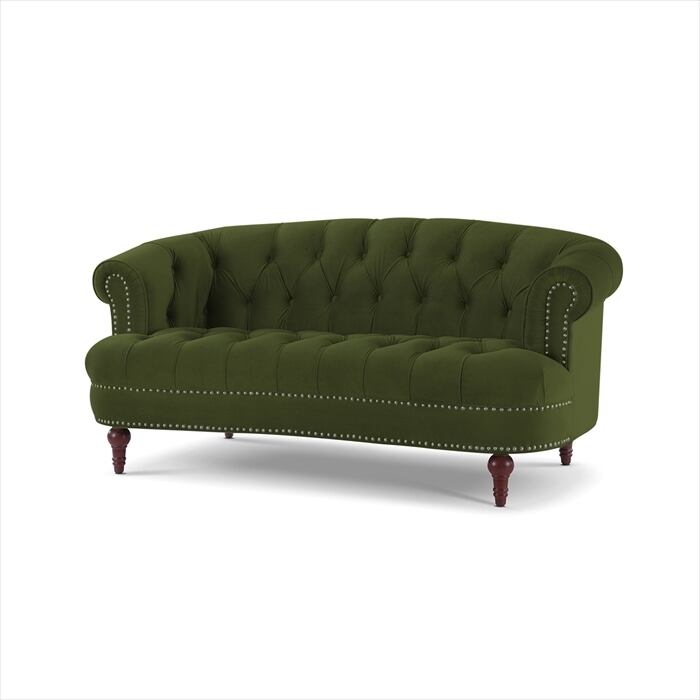 背もたれのボタン留めとネイルヘッドがアクセントになっており、上品で洗練されたデザインが魅力です。