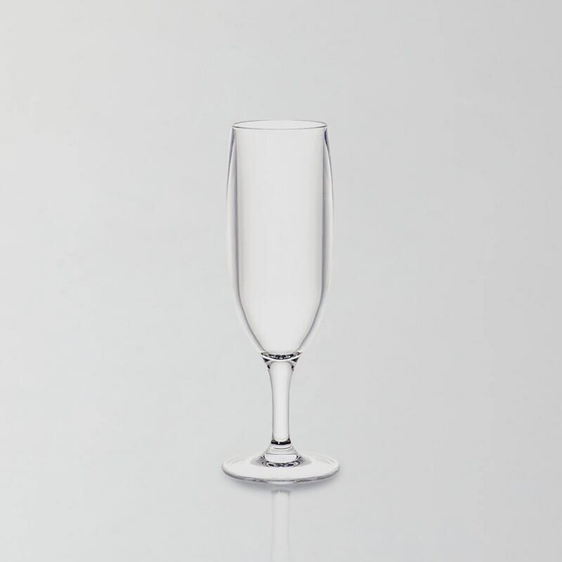 耐衝撃性(ガラスの250倍の強度)に優れた、割れにくく軽量なプラスチック素材です。光の透過率や屈折率はクリスタルガラスと同等で、高い透明性と輝きを持っています。