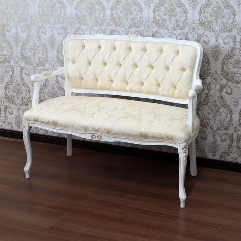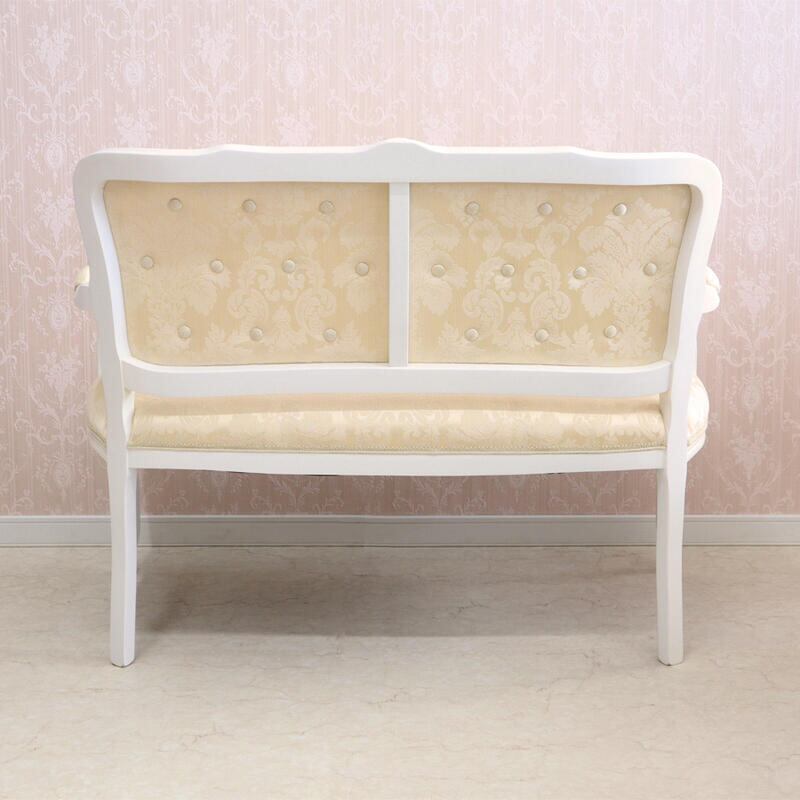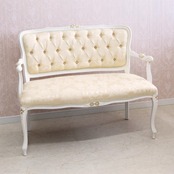 ボタン締めされた上品な生地が印象的で、お部屋やリビングルーム、店舗などでのサロンチェアとしたり、様々な場面で活躍してくれます。