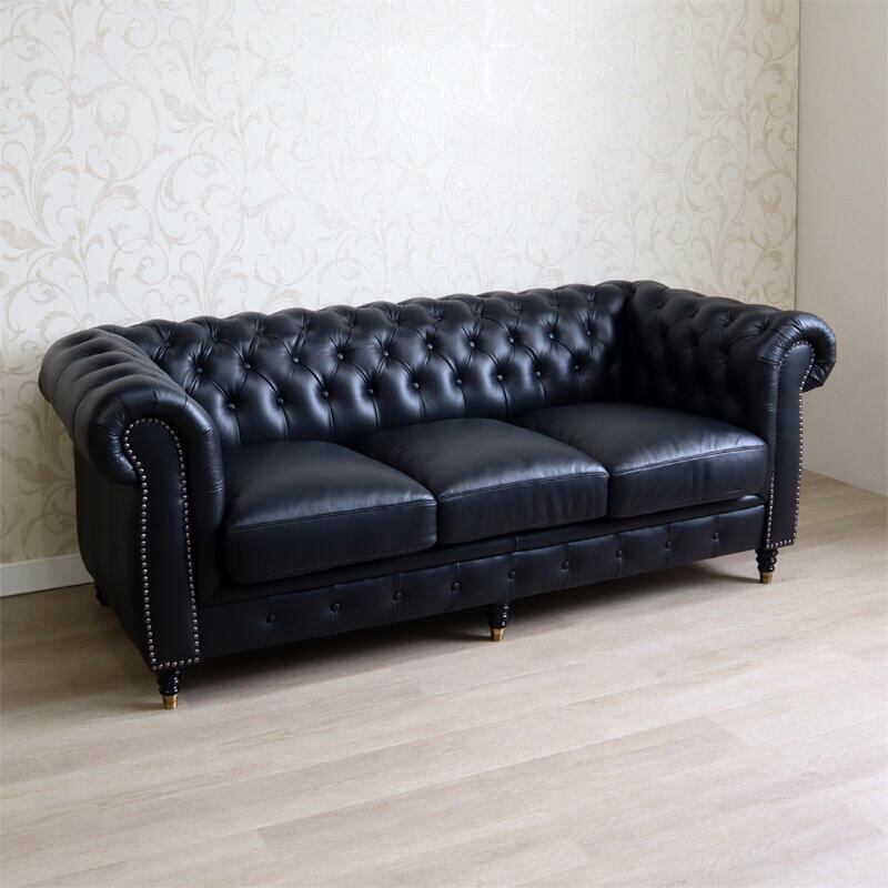 本革 チェスターフィールド 3Pソファ ブラック REImperial-BK/3P