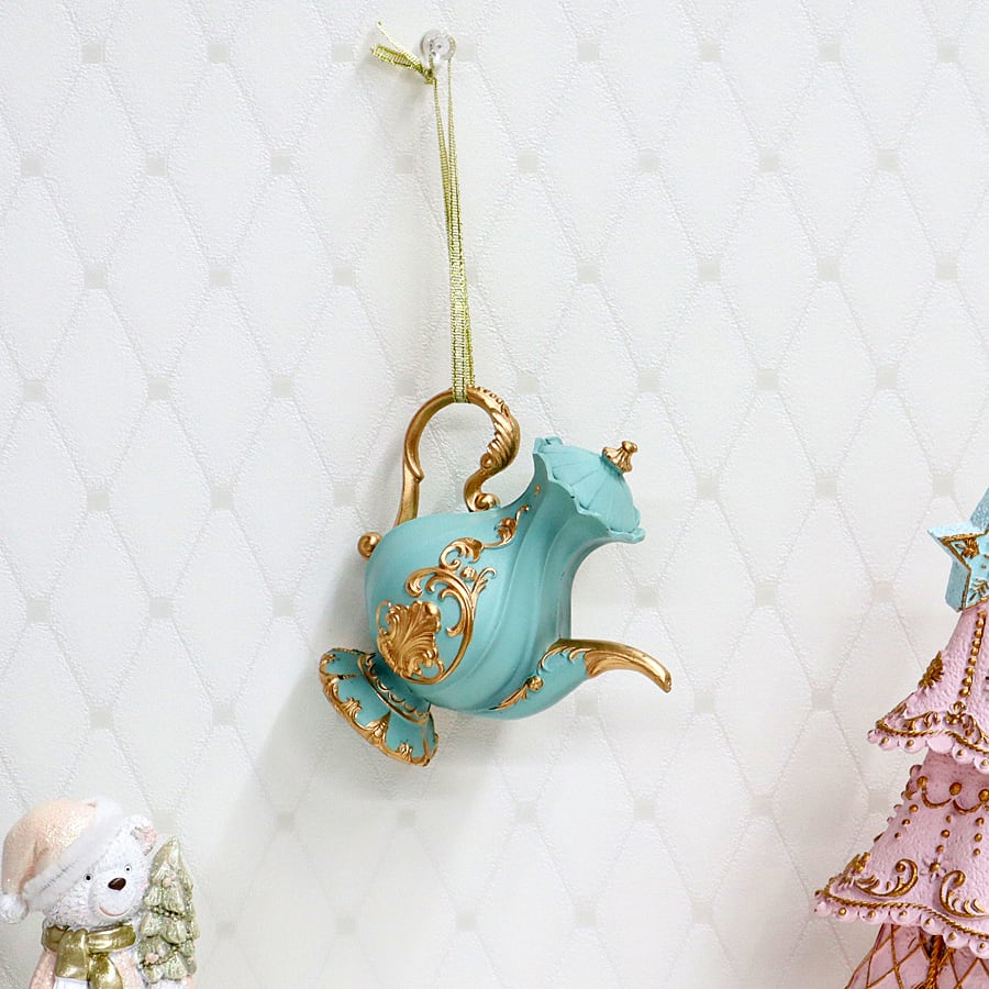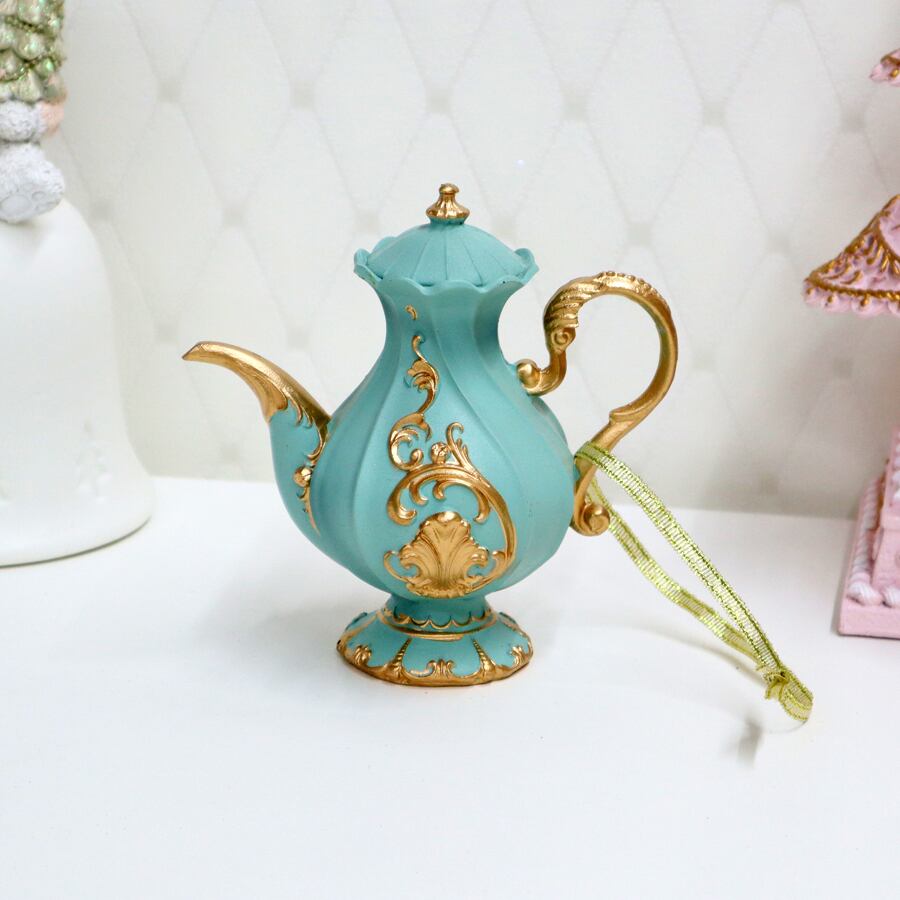 クラシカルなティーポットのクリスマスオーナメント。