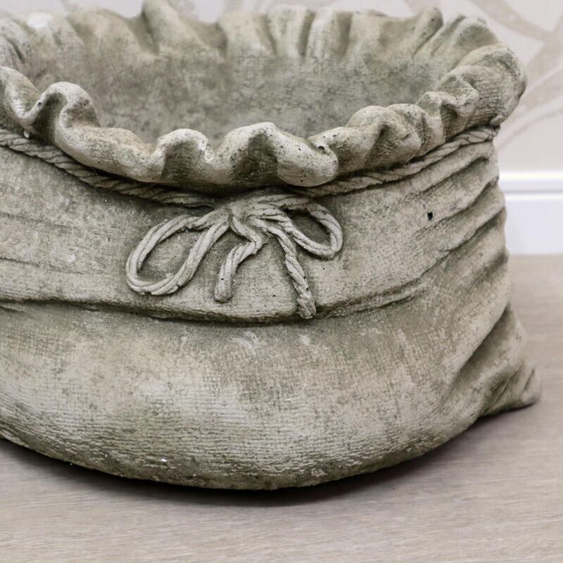 ストーン製なのでずっしりとした重みがあり、麻袋をモチーフにした重厚感のある仕上がりです。