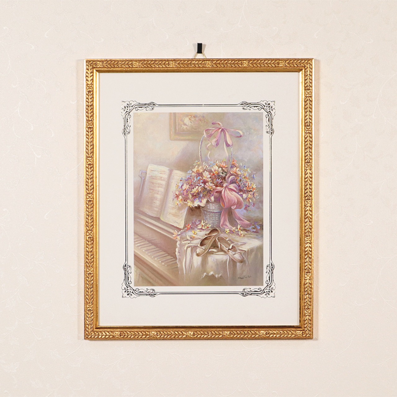 ニュアンスのある淡い色合いのアートに、アンティーク調のフレームが素敵です。