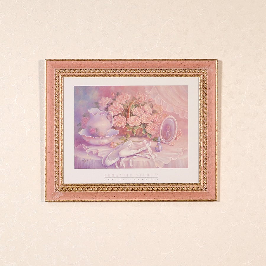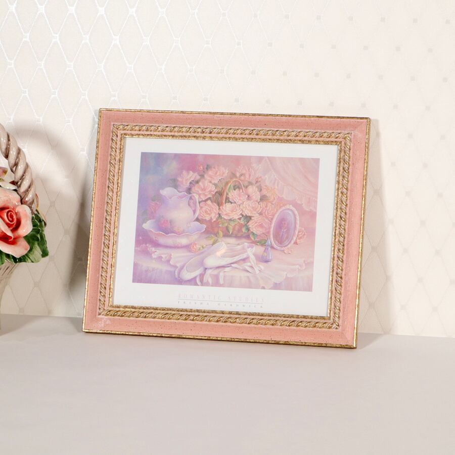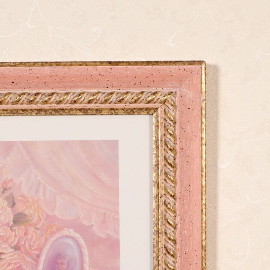 ニュアンスのある淡い色合いのアートに、アンティーク調のフレームが素敵です。