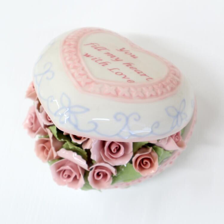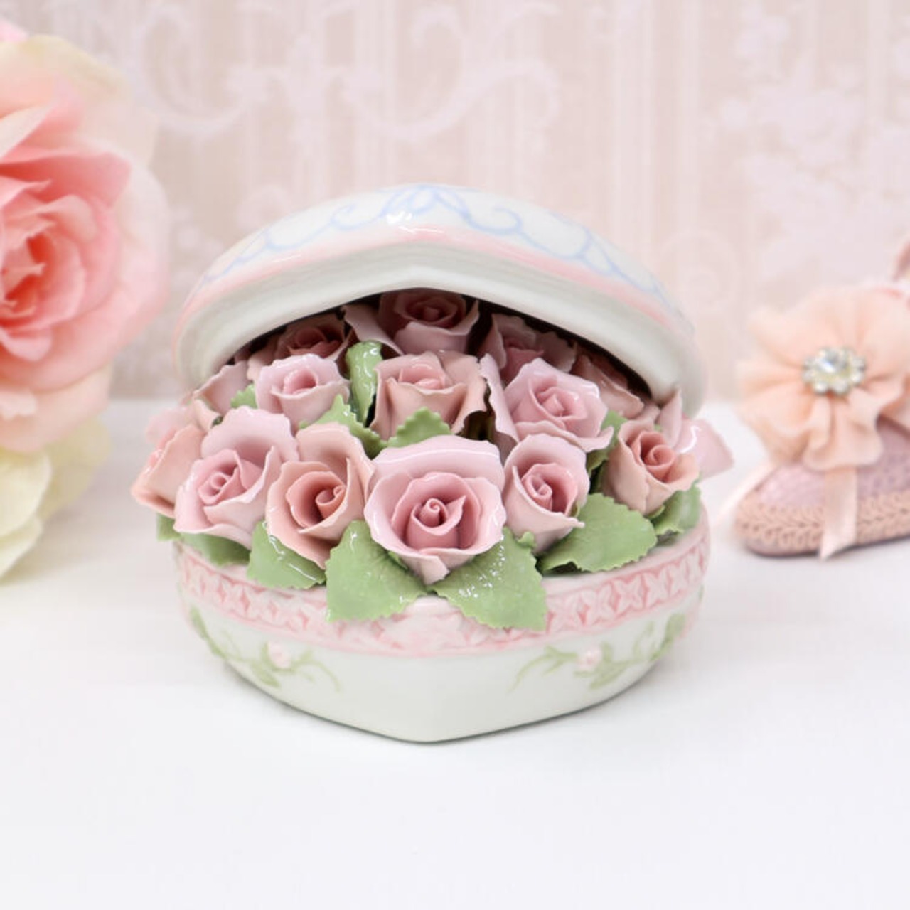 とてもエレガントで可愛らしいデザインが印象的。高級陶磁器を使用し、淡く上品な色合いで細部まで丹念に仕上げられています。
