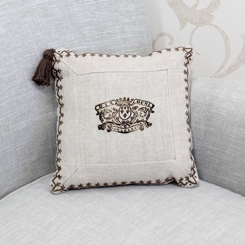フレンチシックでアンティーク感のある雰囲気が印象的なミニクッションです。